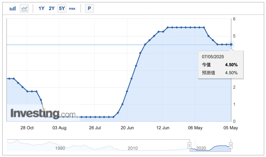北京时间5月8日凌晨2点,美联储联邦公开市场委员会(FOMC)发布了最新的利率决议,将联邦基金利率目标区间维持在4.25%—4.5%不变,符合市场预期。